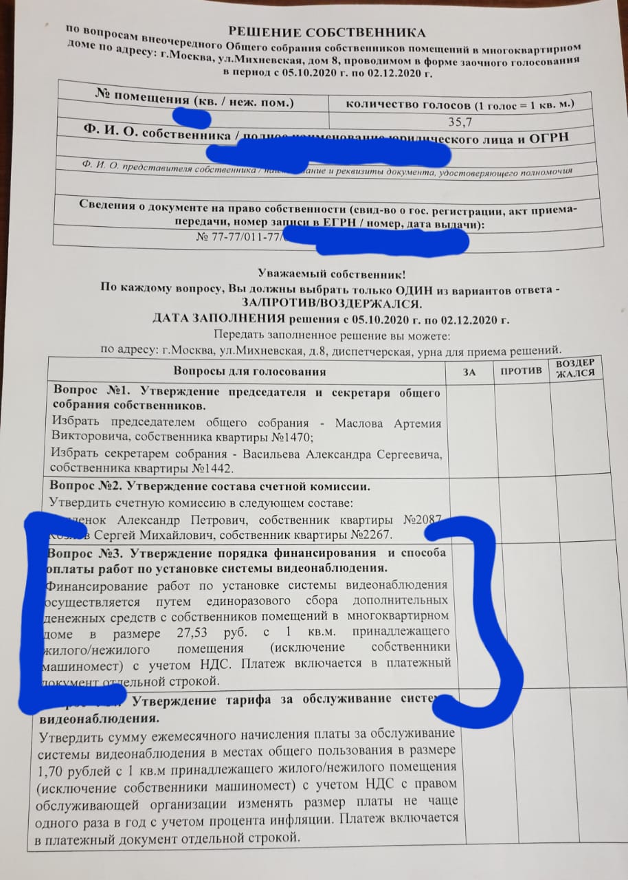 Некоторое время назад с нас уже собирали деньги на видеонаблюдение.