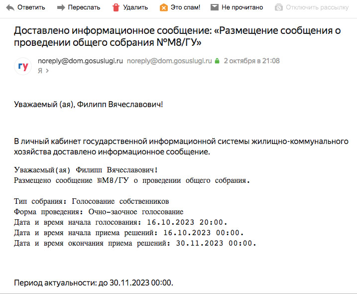 Re: Собрание собственников МКД с 16 октября по 30 ноября 2023