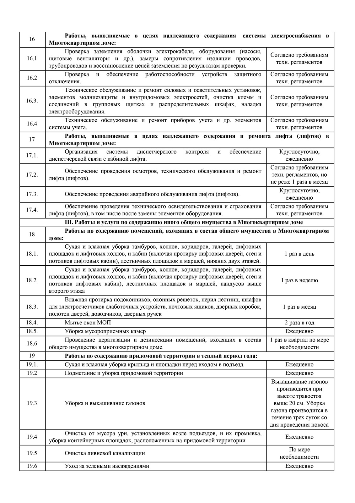 18.2 Сухая и влажная уборка тамбуров, холлов, коридоров, галерей, лифтовых площадок и лифтовых холлов, и кабин (включая протирку лифтовых дверей, потолков и стен лифтовых кабин), лестничных площадок и маршей, пандусов выше второго этажа - 1 раз в неделю