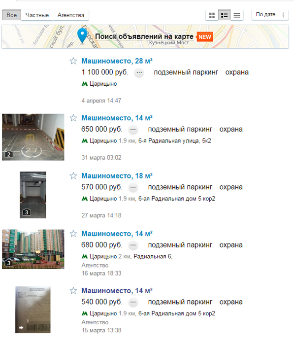 Цены машиномест в ЖК "Царицыно"