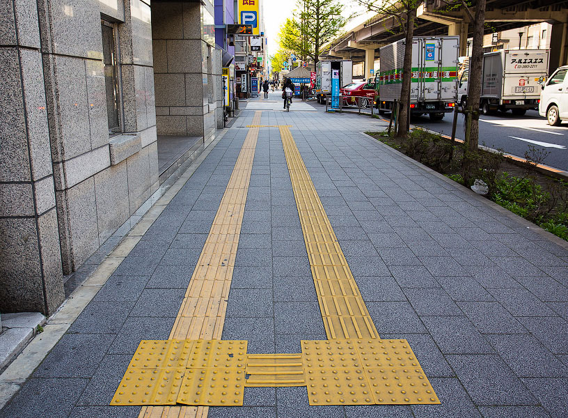вы правы это для инвалидов по зрению желтая плитка и сьезды для колясочников.