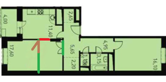 Вот нарисовал: красным отмечено где снести стену, зелёным где возвести, коричневым где будет межкомнатная дверь