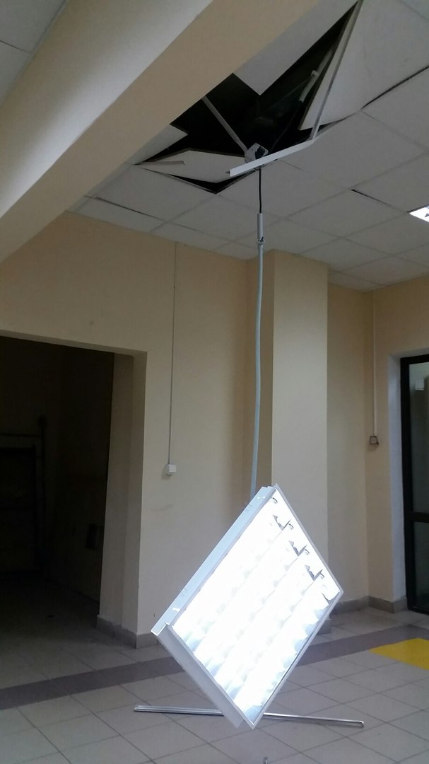 Denis89 писал(а):Сегодня вечером рухнула лампа дневного света. Хорошо, что никто не пострадал. Оставили заявку УК пока бездействует.