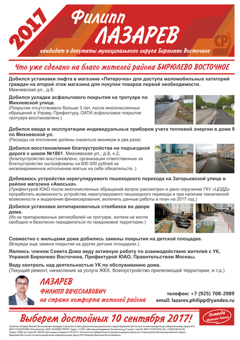 Вчера 02 сентября 2017 года, лично мной по всем почтовым ящикам нашего дома была распространена печатная информация, с целью информирования жителей о выборах.