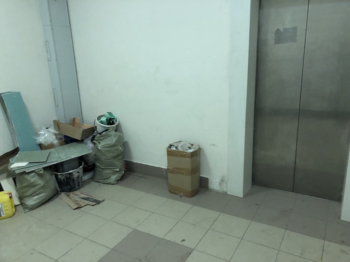 А жители то чем виноваты, а тем кто это все навалил по фигу, понятно, что расчет на то, что дворники все уберут, может это и не сами жильцы, а рабочие, которые ремонтируют квартиры, а вот УК должны предпринять какие-то меры, может развешивать объявление, что складирование мусора запрещено, раз сами не понимают.