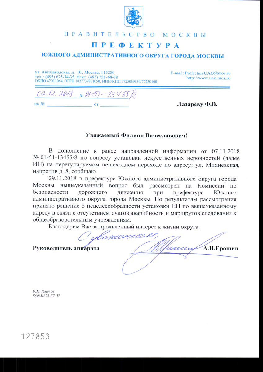 Ответы гос. органов по установке ИН на Загорьевской улице