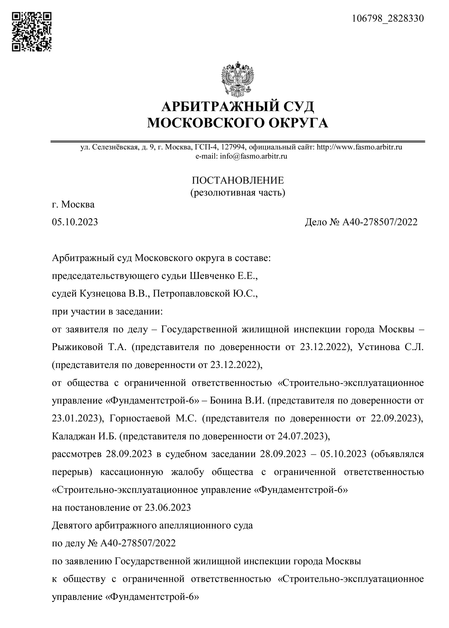 Сегодня 05 октября 2023 года состоялось заседание кассационной инстанции.