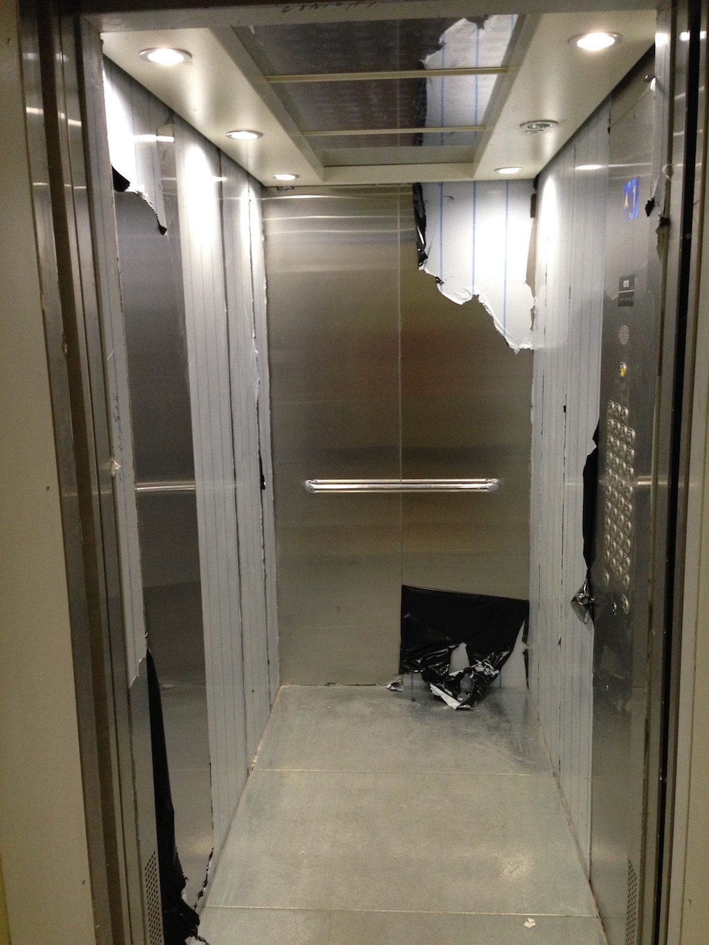 Просьба за 3 часа не убить эти лифты, не отдирать защитную пленку, не царапать, не писать (ударение в этом слове как на "а", так и на "и"), не выкручивать плафоны, не прыгать, не раздвигать двери руками (помним про фотоэлементы) и так далее